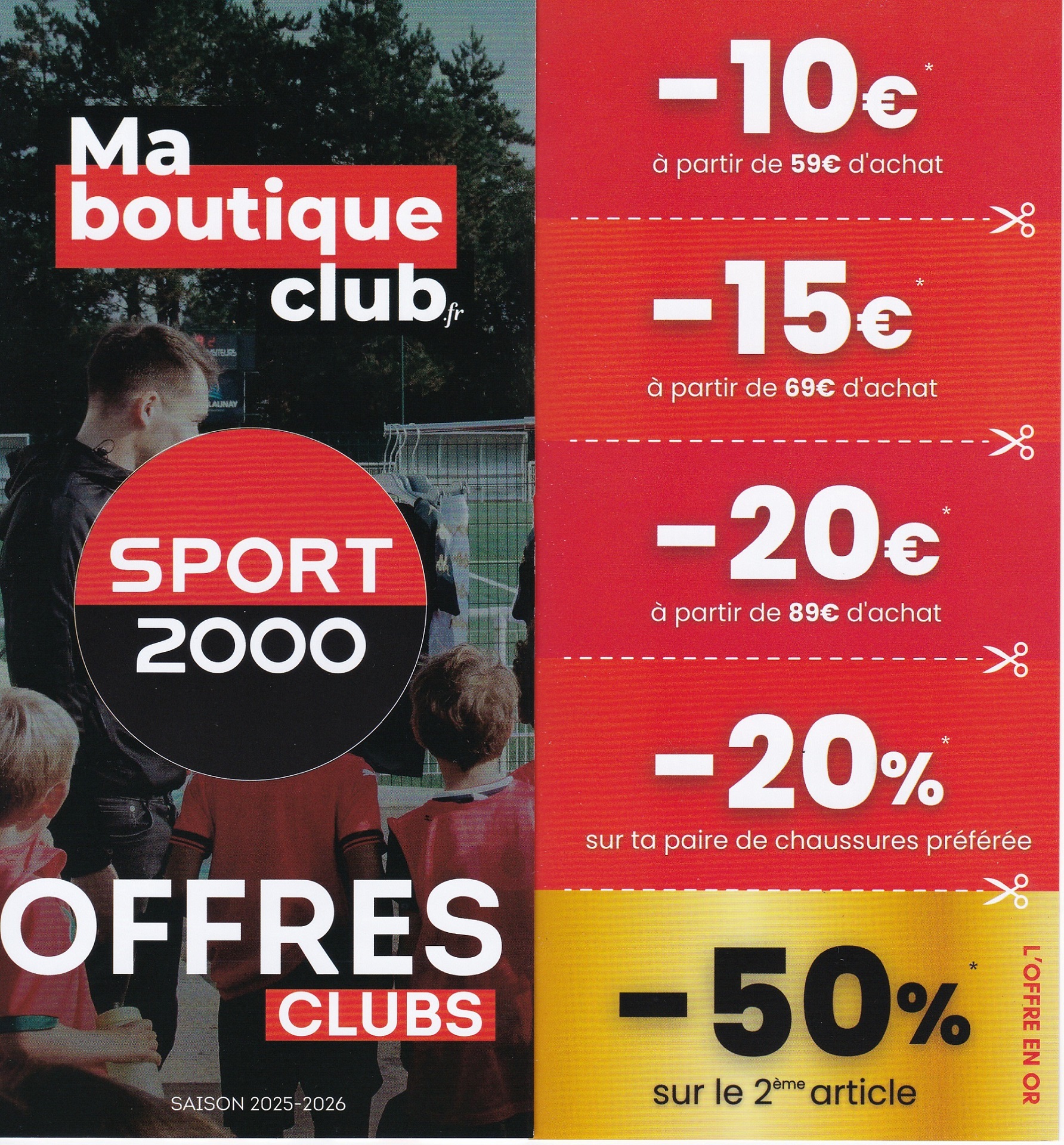 10 €, 15€, 20€ selon montant de l’achat, -20% sur votre paire de chaussures préférée et -50% sur le 2 ième article.
