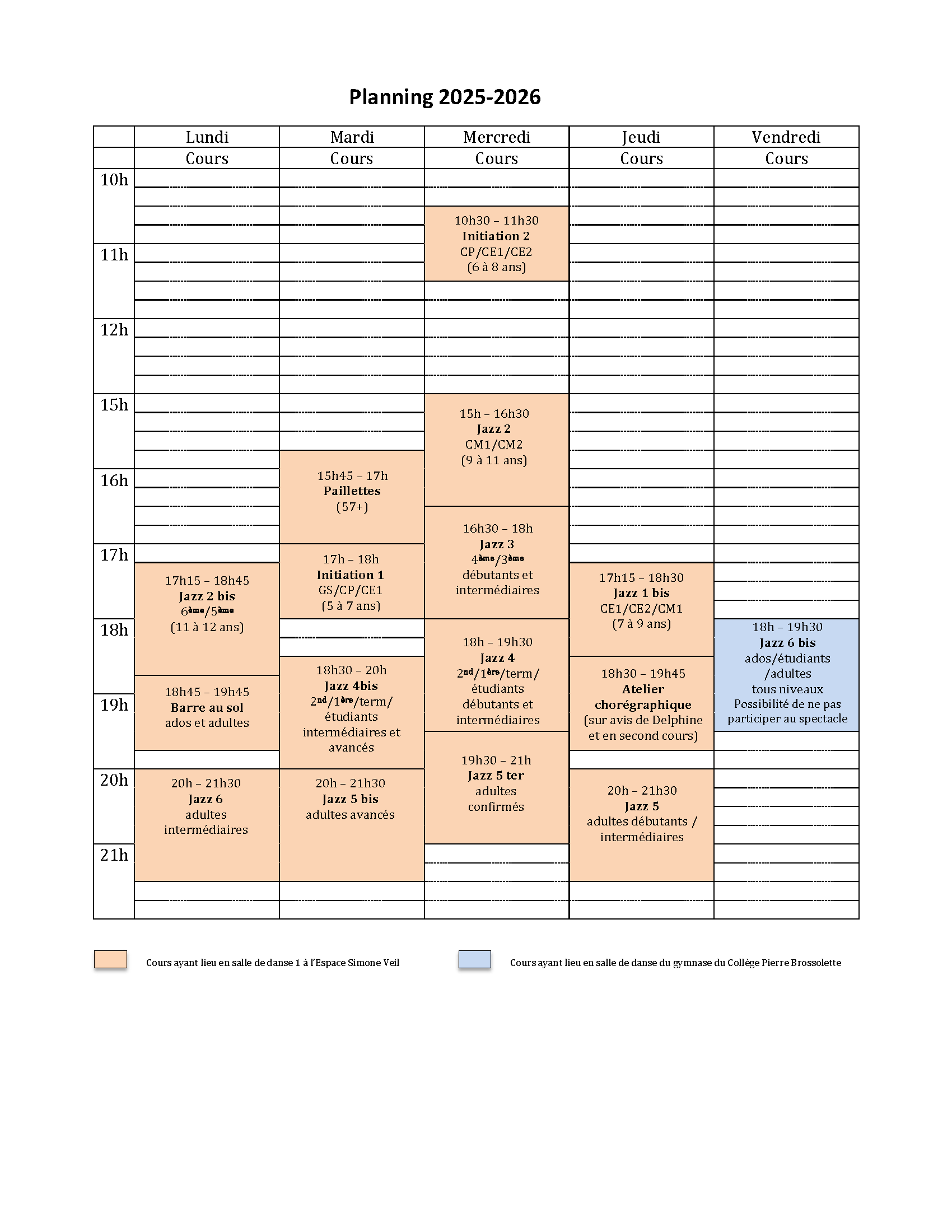 A noter : Ouverture de nouveaux cours de barre au sol pour tous, cours technique et variations pour ados et adultes intermédiaires sans spectacle de fin d’année et enfin, cours danse « Jazz Paillettes » pour adultes débutants de +55 ans